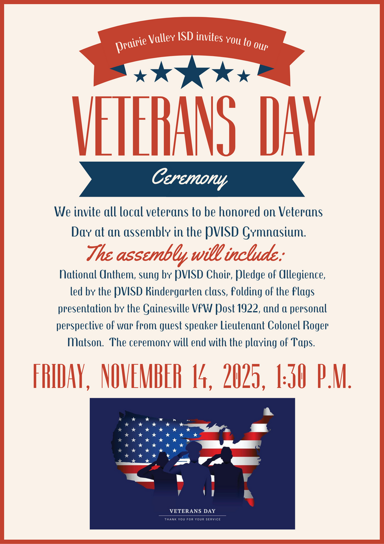 Prairie Valley Invites you to our 2025 Veterans Day Program.